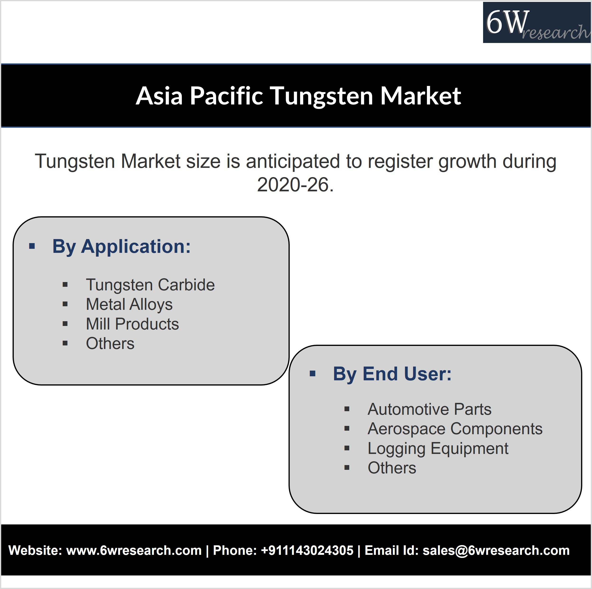 Contact Us: Phone: +911143024305 | Email Id: sales@6wresearch.com