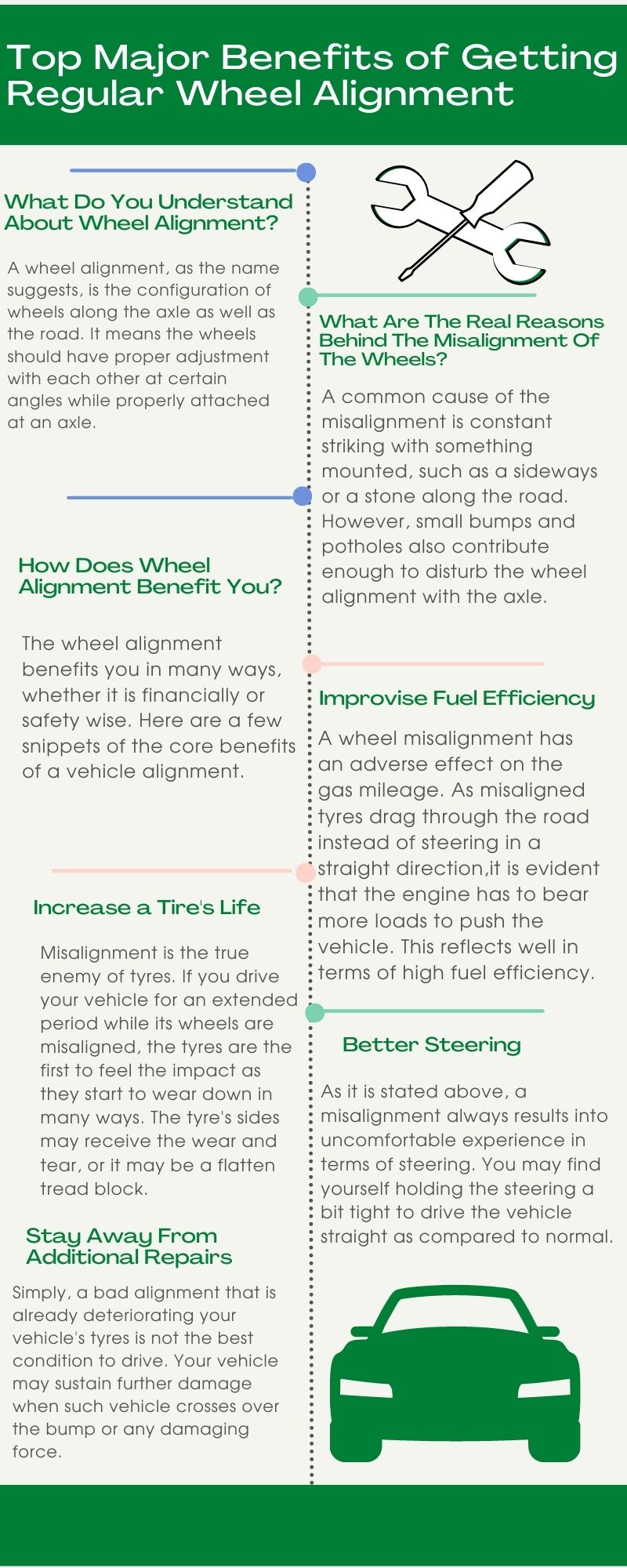 The wheel alignment benefits you in many ways, whether it is financially or safety wise. Here are a few snippets of the core benefits of a vehicle alignment.