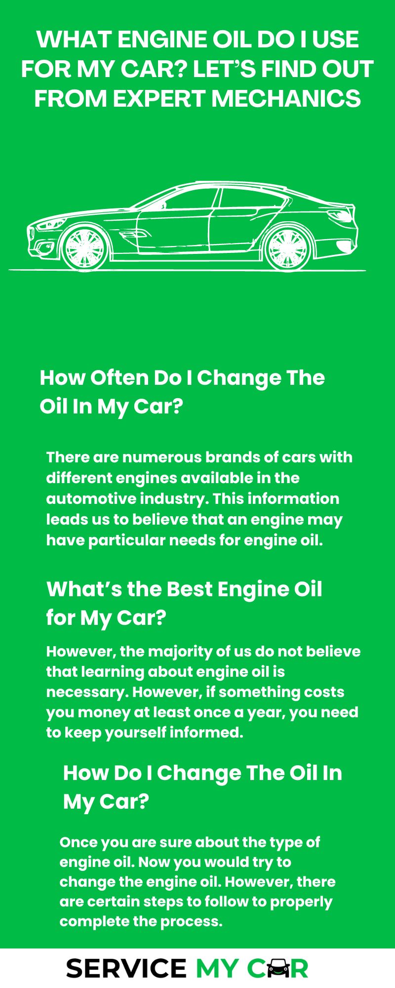 These are the basics of the engine oil; you can choose one based on the requirements. However, it is worth assessing the situation if you are looking for a car oil change near me. However, you can also get the help of a professional at Service My Car.